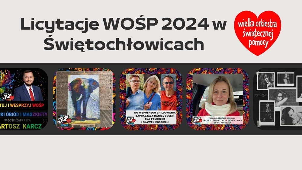 Grill z władzami miasta Świętochłowice, obiad z Bartoszem Karczem, czy chleb z tłustym przygotowane przez Aleksandrę Poloczek – te i inne atrakcje możecie licytować w ramach tegorocznej edycji Wielkiej Orkiestry Świątecznej Pomocy.
