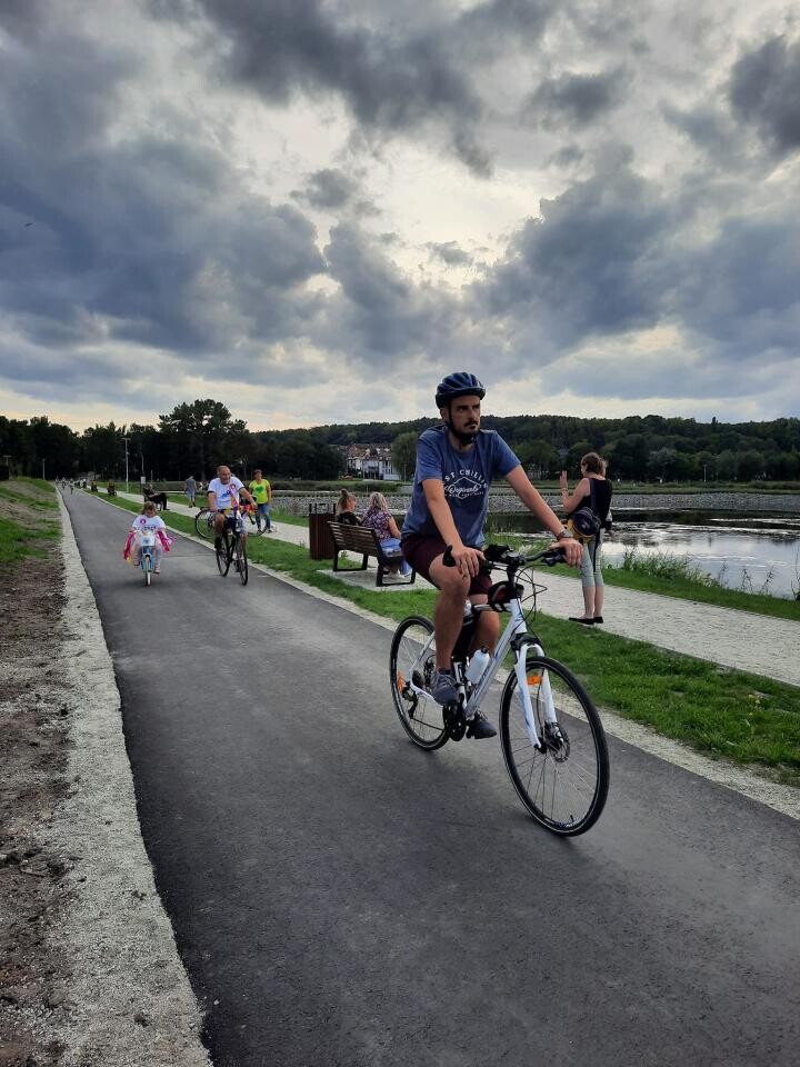 Na ścieżkach wokół stawu tłumy rowerzystów cieszyły się doskonałą pogodą i malowniczymi widokami. To doskonała okazja, by wyjść na świeże powietrze i spędzić czas aktywnie, korzystając z jednocześnie przyjaznego dla środowiska środka transportu.