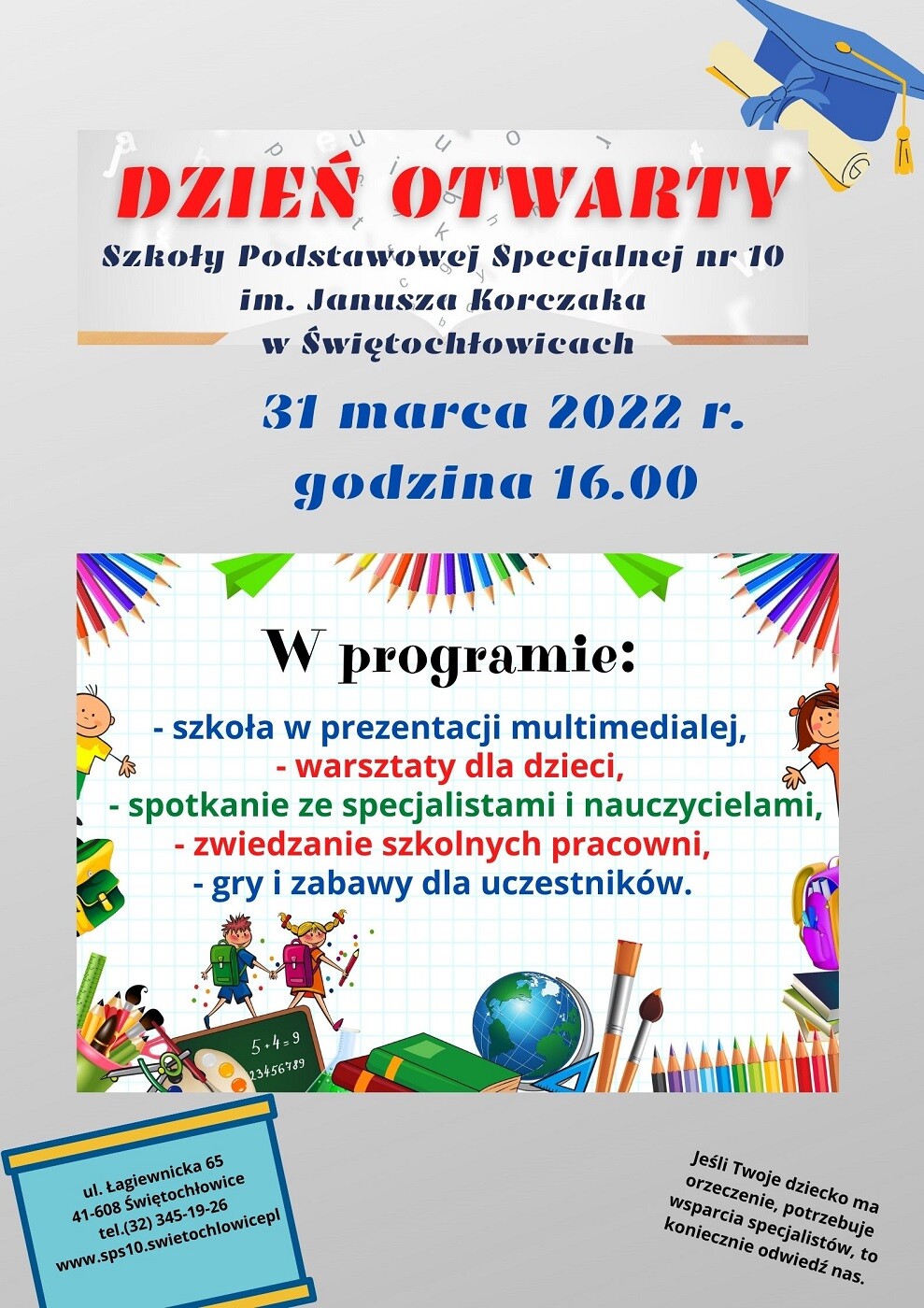 Szkoła Podstawowa Specjalna nr 10 w Świętochłowicach zaprasza do udziału w Dniach Otwartych.