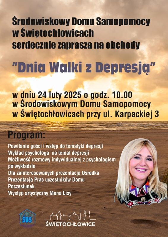 Środowiskowy Dom Samopomocy w Świętochłowicach zaprasza na wydarzenie poświęcone świadomości i profilaktyce depresji. Spotkanie odbędzie się 24 lutego 2025 roku o godzinie 10:00 w siedzibie placówki przy ul. Karpackiej 3.