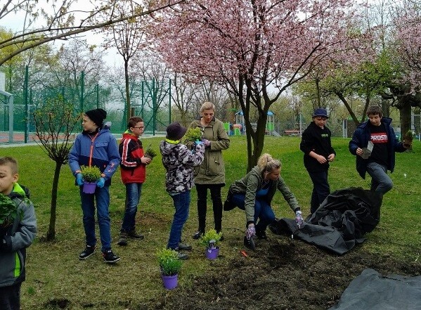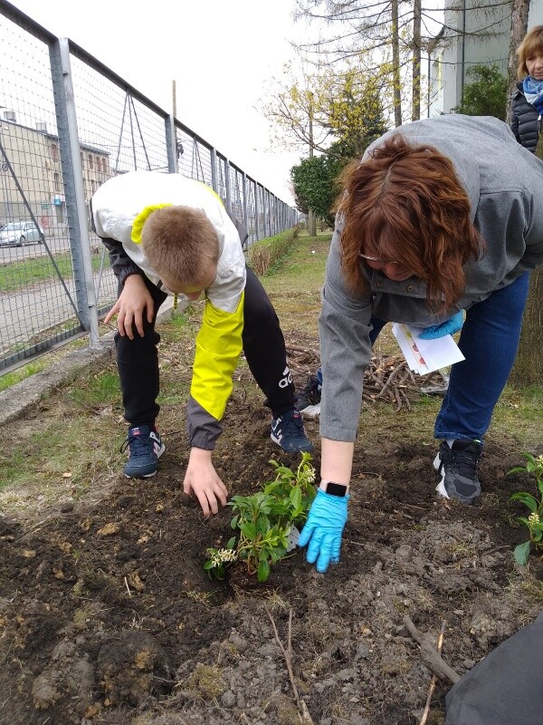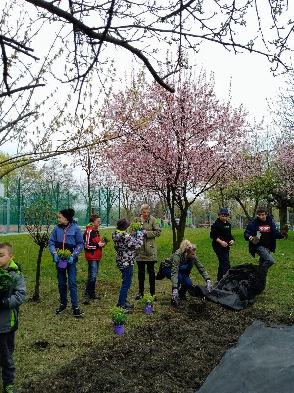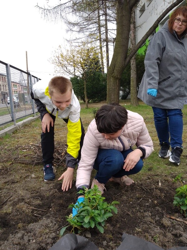 W ramach programu Różnorodność biologiczna, dofinansowanym przez WFOŚ i GW w Katowicach, na terenie szkoły powstaje Zielona oaza spokoju, która będzie pełniła funkcję edukacyjno-terapeutyczną. W piątek prace w ogrodzie ruszyły pełną parą, zrobiło się zielono i kolorowo. Zostały posadzone rośliny, drzewa ozdobne i drzewka owocowe. Następnym i ostatnim etapem będzie sadzenie warzyw i ziół oraz tworzenie ścieżki edukacyjnej.