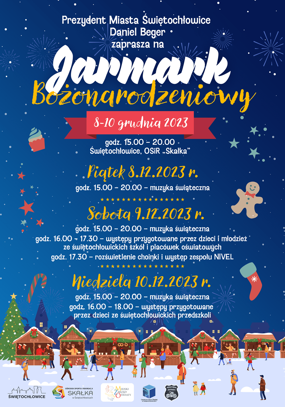Prezydent Miasta Świętochłowice serdecznie zaprasza na jarmark świąteczny na terenie OSiR Skałka! Wydarzenie odbędzie się w dniach 8-9-10 grudnia w godzinach popołudniowych.
