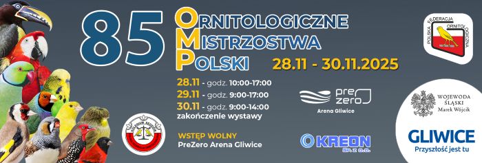 Już 28–30 listopada 2025 w PreZero Arenie Gliwice odbędą się 85. Ornitologiczne Mistrzostwa Polski – wydarzenie, które co roku przyciąga hodowców, pasjonatów i miłośników ptaków z całego kraju.