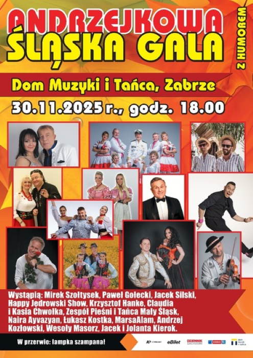 W ostatni listopadowy, andrzejkowy weekend organizatorzy spotkają się z Wami na największych Andrzejkach w Polsce już po raz dziewiętnasty! Wystąpią największe gwiazdy śląskiej sceny muzycznej i kabaretowej. Będzie muzyka, humor, zaskakujące duety i fantastyczna zabawa.