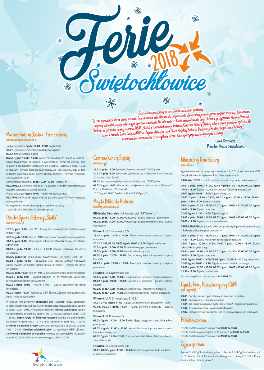 Trwają ferie zimowe. Zapraszamy do skorzystanie z oferty miejskich jednostek w czasie tegorocznych ferii.