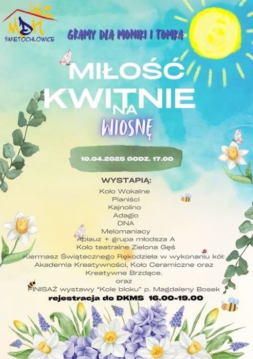 Tym razem akcja zostanie zorganizowana w MDK, już w najbliższy czwartek przy okazji koncertu "Miłość kwitnie na wiosnę". Będzie też kiermasz wielkanocny, wystawa prac plastycznych, słodki bufet.