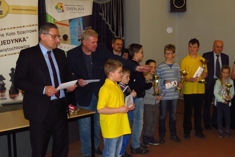 Puchary przekazali zwycięzcom: Stanisław Korman, zastępca Prezydenta Miasta Świętochłowice, Wojciech Przetacznik, dyrektor Młodzieżowego Domu Kultury oraz Jerzy Plichta, kierownik Szkolnego Koła Szachowego. Dla trzech najlepszych zawodników w poszczególnych grupach wiekowych przygotowano również bony towarowe. Dla najliczniejszego klubu UKS Pałac Młodzieży w Katowicach oraz rodzeństw startujących w rozgrywkach ufundowano wejściówki do Muzeum Powstań Śląskich w Świętochłowicach. Wszyscy pozostali uczestnicy turnieju otrzymali pamiątkowe medale.