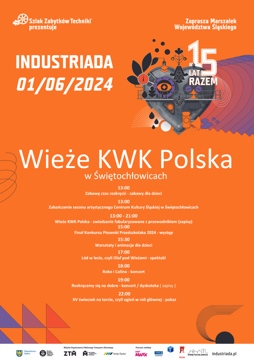 Czas ostatecznie odsłonić karty tegorocznej Industriada, w tym roku wyjątkowy jubileusz 15-lecia i to w Dzień Dziecka, nie mogło zabraknąć atrakcji dla dzieci! I to właśnie na dzieciach organizatorzy skupili się najbardziej. Dmuchańce, animacje, spektakl i koncert, ale to nie wszystko! Wieczorem odbędzie się dyskoteka pod chmurką i pokaz ognia, a przez cały dzień będzie możliwość zwiedzania Wież.