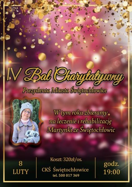 Już 8 lutego odbędzie się IV Bal Charytatywny Prezydenta Miasta Świętochłowice. W tym roku środki zebrane podczas wydarzenia zostaną przeznaczone na leczenie i rehabilitację Martyny Majchrewicz, mieszkanki naszego miasta.