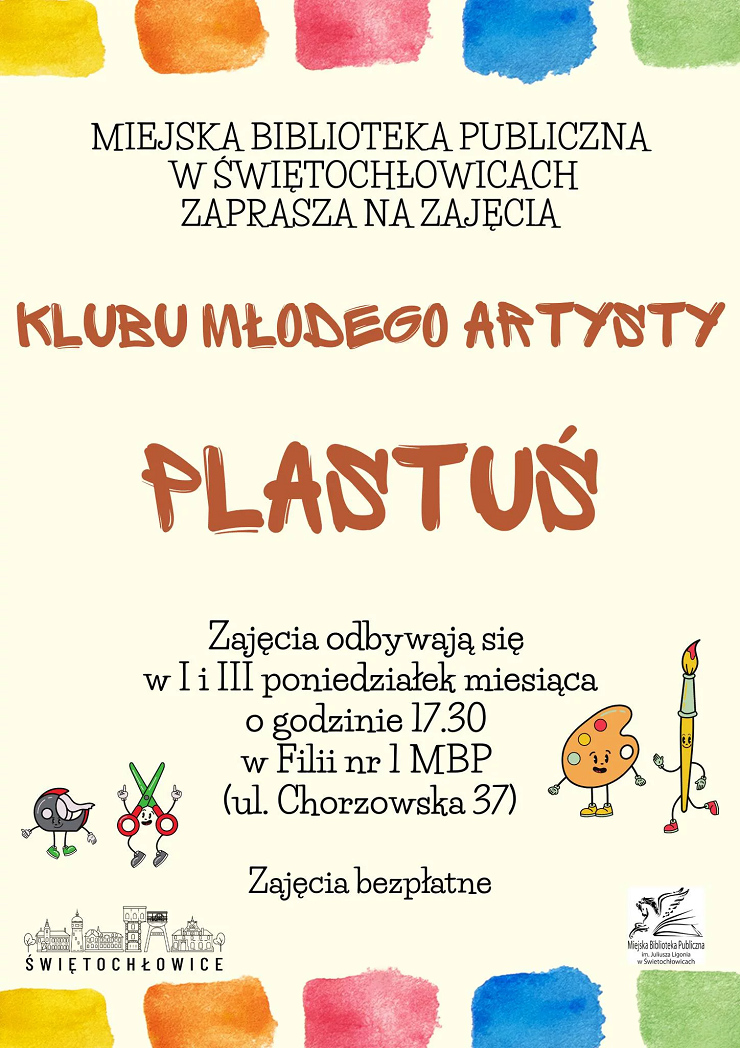 Wszystkie dzieci z zamiłowaniem do prac plastycznych zaproszone są do udziału w bezpłatnych zajęciach Klubu "Plastuś" Miejskiej Biblioteki Publicznej w Świętochłowicach.