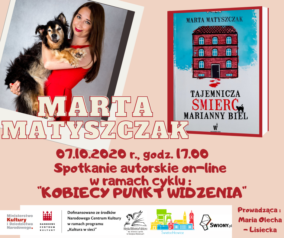 Miejska Biblioteka Publiczna w Świętochłowicach rozpoczęła cykl spotkać autorskich pt.: "Kobiecy punkt widzenia" on-line w ramach projektu „Kultura w sieci”, na który otrzymała dotację z Narodowego Centrum Kultury .