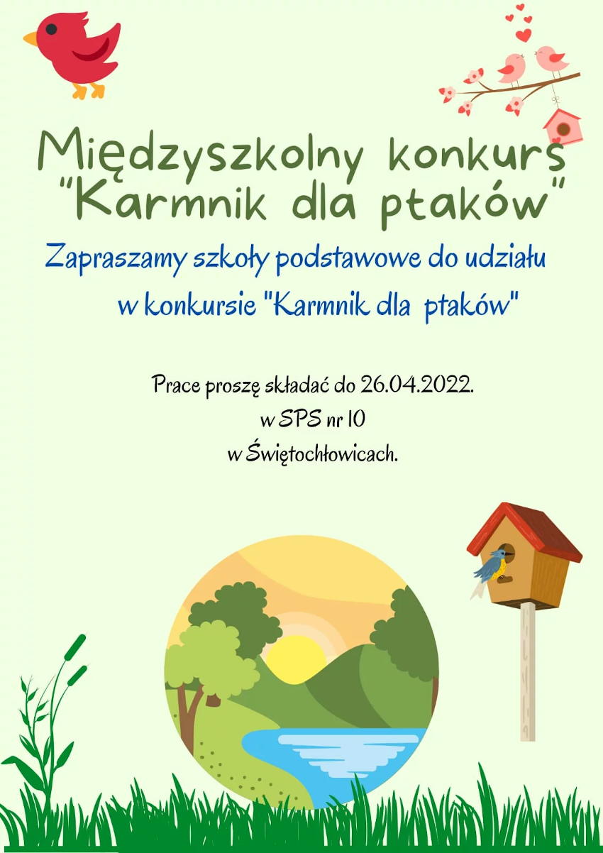Szkoła Podstawowa Specjalna nr 10 zaprasza uczniów szkół podstawowych do wzięcia udziału w międzyszkolnym konkursie pt. "Karmnik dla ptaków".