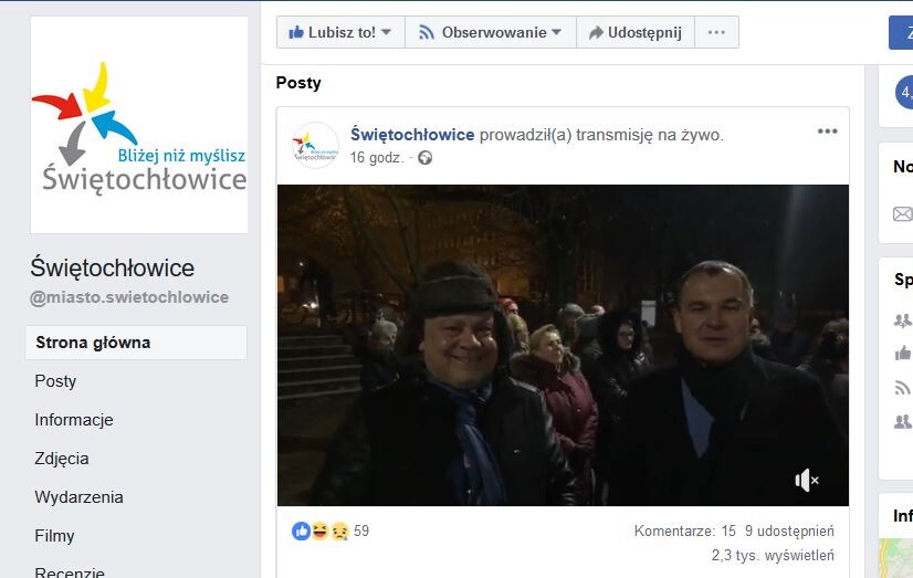 Wczoraj wieczorem podczas protestu zorganizowanego przeciw zmianom w funkcjonowaniu przedstawień teatralnych przy Centrum Kultury Śląskiej została na profilu facebookowym Urzędu Miasta w Świętochłowicach opublikowana relacja na żywo bez zgody i wiedzy pracowników magistratu.