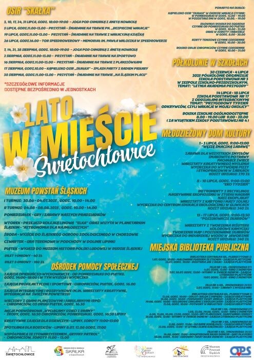 Wypoczynek w mieście wcale nie musi być nudny. Wręcz przeciwnie – Muzeum Powstań Śląskich, OSiR „Skałka”, Ośrodek Pomocy Społecznej, Młodzieżowy Dom Kultury oraz Miejska Biblioteka Publiczna w Świętochłowicach przygotowały bogaty program zajęć i wydarzeń na lato 2025.