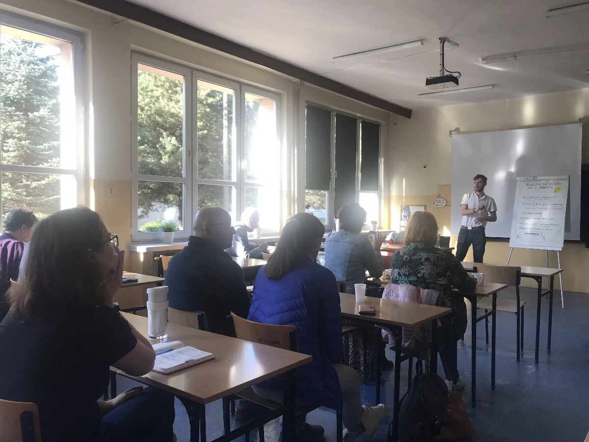 Po szkoleniu dla uczniów, przyszedł czas na warsztat dla nauczycieli. Kadra pedagogiczna podczas szkolenia również miała okazję zapoznać się z tematyką mediacji w edukacji.