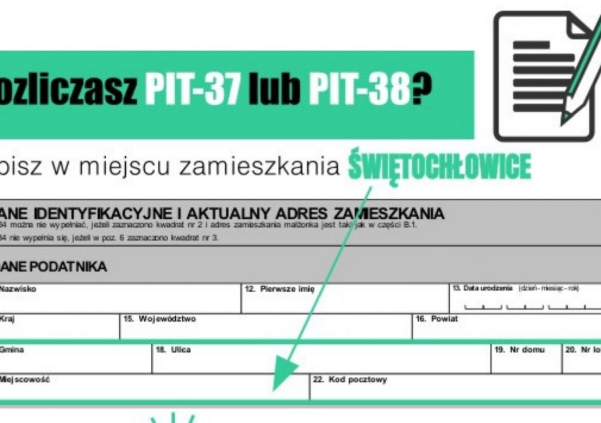 Pieniądze z podatków to zastrzyk dla budżetu miasta, dlatego zachęcamy, aby w okresie rozliczeń podatkowych podać w formularzu PIT świętochłowicki adres zamieszkania. Świętochłowice uzyskały z podatku od osób fizycznych za 2019 rok 57,8 mln zł. To kwota, dzięki której można przeprowadzić m.in. konkretne inwestycje drogowe lub modernizacyjne.
