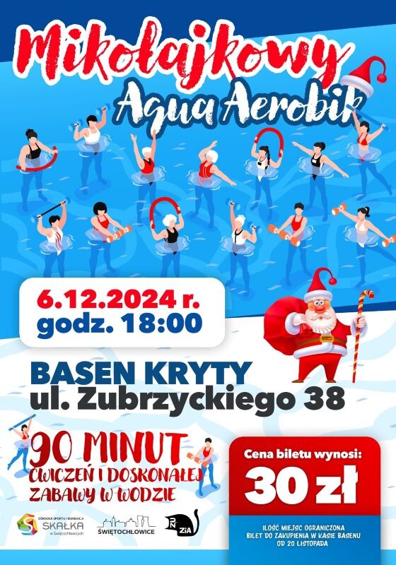 Świętochłowice nie zwalniają tempa! Już 6 grudnia, w Mikołajki, Ośrodek Sportu i Rekreacji "Skałka" zaprasza na wyjątkowe wydarzenie – Mikołajkowy Aqua Aerobik. To doskonała okazja, by spędzić ten radosny dzień w aktywny sposób.