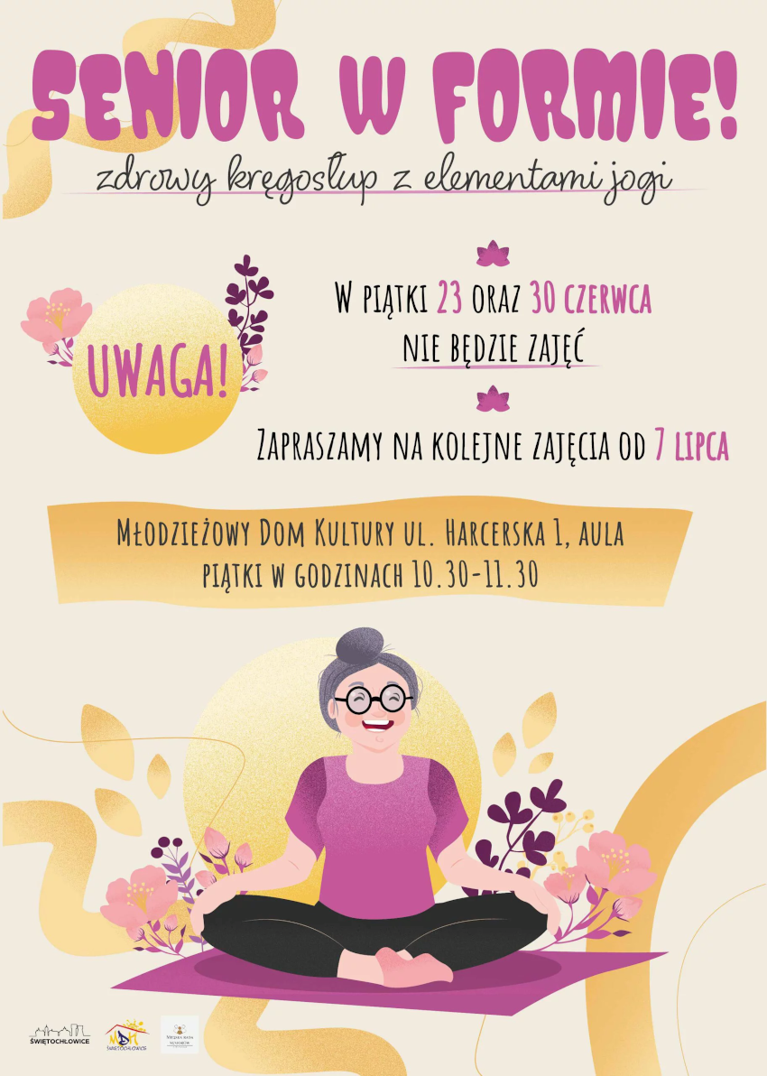 Serdecznie zapraszamy na kolejne zajęcia “zdrowy kręgosłup z elementami jogi” od 7 lipca, które będą odbywały się również w sezonie wakacyjnym!
