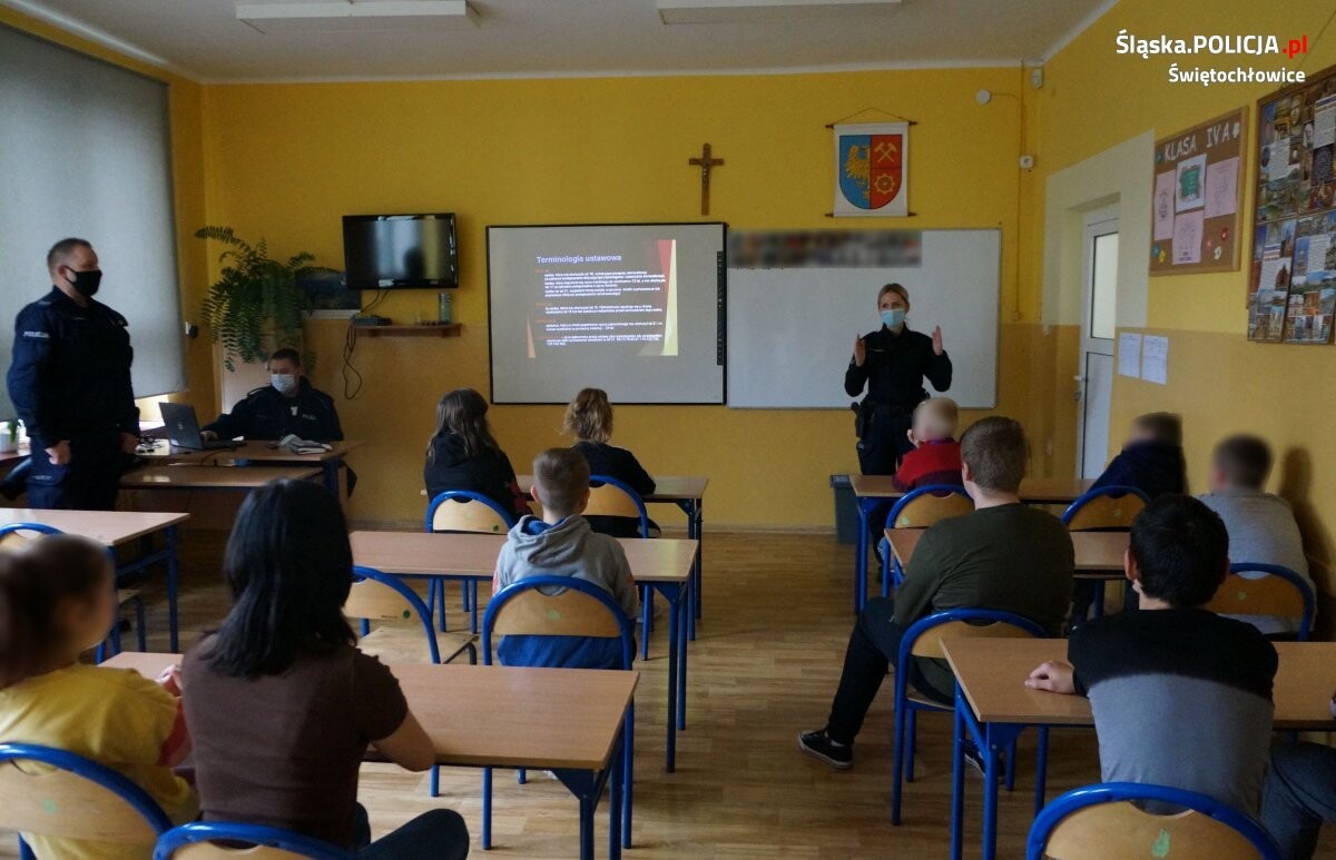 Mundurowi ze świętochłowickiej policji spotkali się dzisiaj z młodzieżą z SP nr 19.