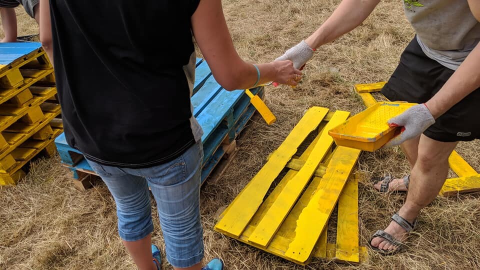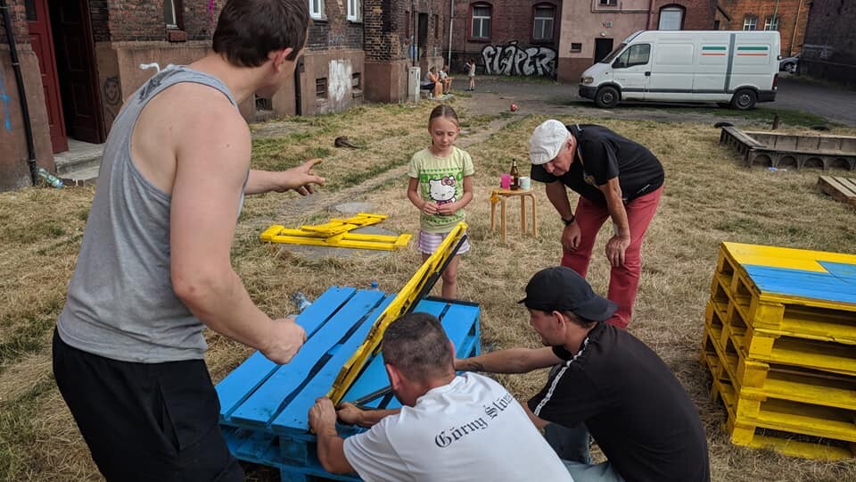 Chociaż pomysł zainicjował RAŚ, to jego finalizacja nie obyłaby się bez pomocy mieszkańców, Kilkanaście osób zjawiło się na miejscu z pakietem narzędzi i chęcią do pomocy. Po pewnym czasie palety zamieniły się w barwne i funkcjonalne ławki i stolik - tak zrodził się pierwszy Śląski Plac w Świętochłowicach.