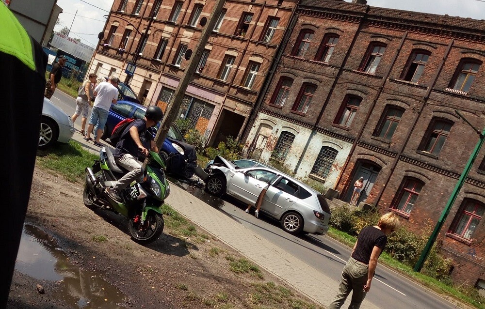 Do zdarzenia doszło po godzinie 11 na ulicy Śląskiej. Kobieta kierująca samochodem marki mazda jechała w kierunku Rudy Śląskiej. Kobieta jechała z nadmierną prędkością i aby uniknąć zderzenia z jadącym przed nią motorowerzystą, zjechała na przeciwległy pas ruchu, po czym zderzyła się czołowo z kierowcą nissana. W wyniku uderzenia nissan uszkodził jeszcze samochód marki volvo. Na szczęście nikt nie ucierpiał w tym zdarzeniu.