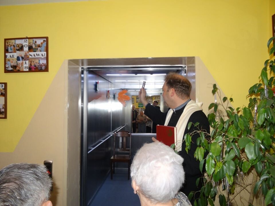 18 grudnia br. w Miejskim Domu Pomocy Społecznej „Złota Jesień” w Świętochłowicach odbyło się uroczyste uruchomienie i poświęcenie świeżo zakończonej inwestycji – tj. wymiany windy osobowej.