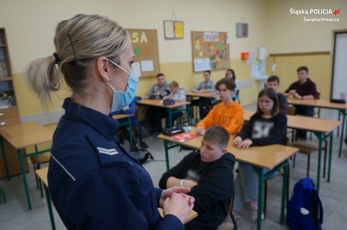 Mundurowa ze świętochłowickiej policji spotkała się z młodzieżą z SP nr 2.
