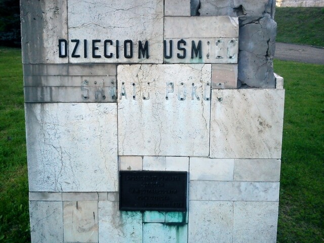 Pamiętam hasło na pomniku przy stadionie-"Dzieciom uśmiech, Światu pokój".