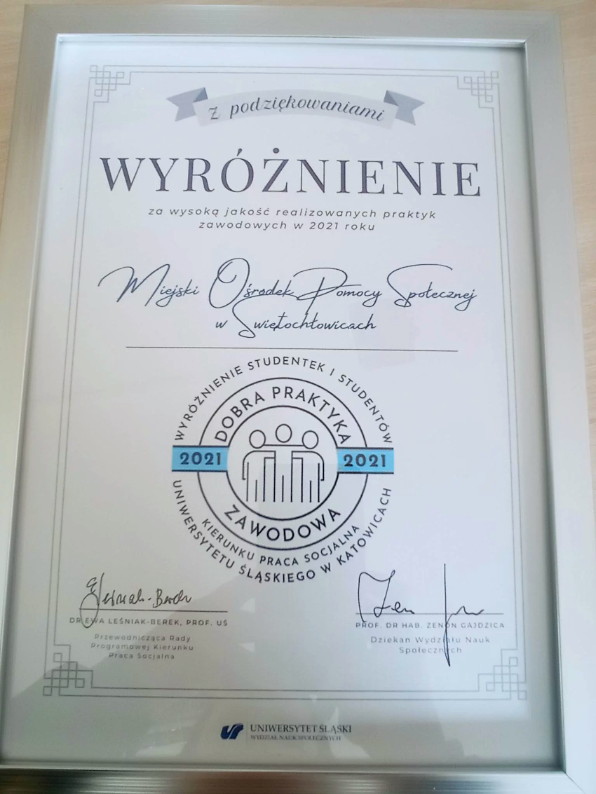 Na spotkaniu wręczono wyróżnienia przyznane przez studentki i studentów kierunku “praca socjalna” za wysoką jakość realizowanych praktyk zawodowych, wyrażając tym wdzięczność za wkład w profesjonalne przygotowanie do wykonywania tego potrzebnego społecznie zawodu. Podczas wydarzenia uhonorowany został Ośrodek Pomocy Społecznej w Świętochłowicach.