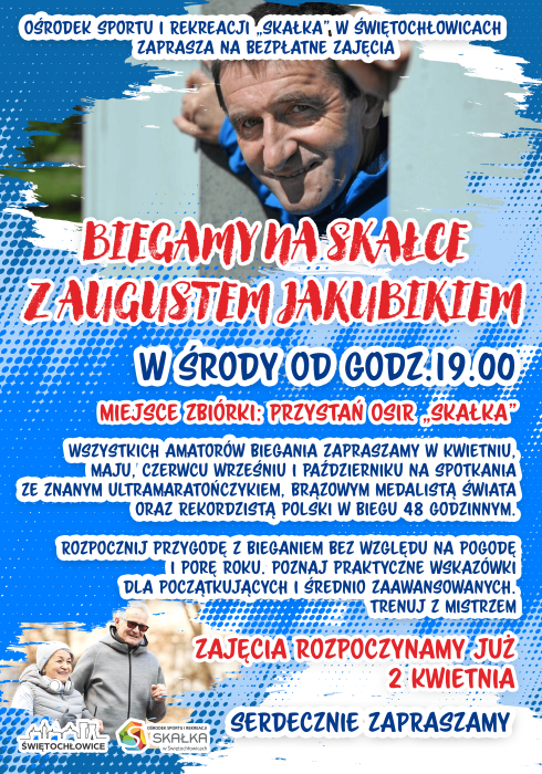 Wszystkich amatorów biegania OSiR "Skałka" zaprasza w kwietniu, maju, czerwcu wrześniu i październiku na spotkania ze znanym ultramaratończykiem, brązowym medalistą świata oraz rekordzistą polski w biegu 48-godzinnym.