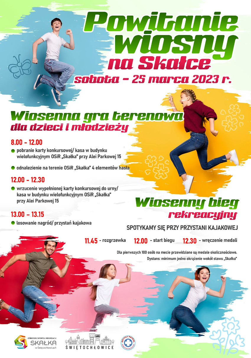 25 marca witamy wiosnę na Skałce! Z tej okazji zapraszamy na Wiosenny bieg rekreacyjny i Wiosenną grę terenową dla dzieci i młodzieży.