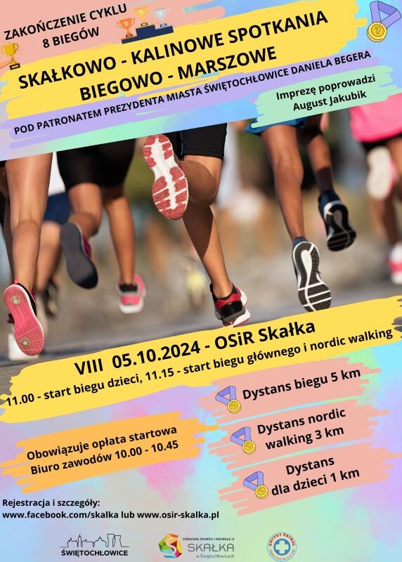 Świętochłowiczanie będą mieli okazję po raz ostatni w tym sezonie pobiec w Skałkowo - Kalinowym Spotkaniu Biegowo - Marszowym. Jak zawsze na uczestników czeka dystans 5 kilometrów, a w przypadku nordic walking 3 kilometrów. Organizatorzy nie mogli pominąć dzieci, na które czeka 1 kilometr. Najmłodsi biegacze wystartują już o godz. 11.00, a starsi o 11.15. Wydarzenie odbędzie się na terenie OSiR Skałka.