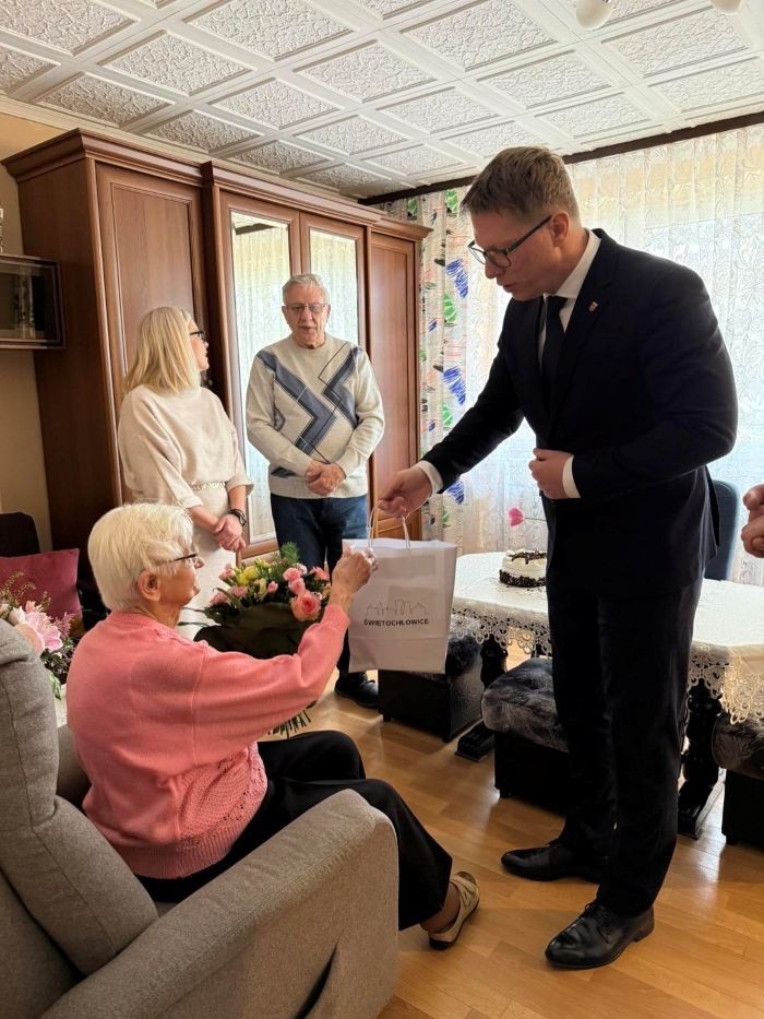 W poniedziałek, 17 marca, świętochłowiczanka, pani Waleria, obchodziła setne urodziny! Tak okrągłą rocznicę świętowała w gronie rodziny. Jubilatkę w ten wyjątkowy dzień odwiedził również prezydent miasta, Daniel Beger, aby przekazać jej drobny upominek i najserdeczniejsze życzenia.