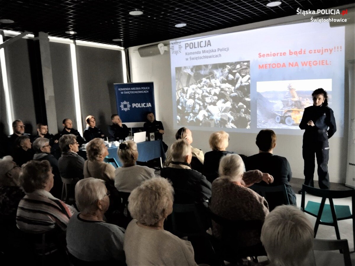 Policjanci ze świętochłowickiej komendy w miniony wtorek na terenie Wież KWK Polska spotkali się z seniorami zamieszkującymi miasto. Wszystko za sprawą zorganizowanej przez nich debaty społecznej. Zgodnie z jej nazwą „Bezpieczeństwo seniorów w życiu codziennym i w cyberprzestrzeni” głównym tematem spotkania było szeroko pojęte bezpieczeństwo osób starszych. Policjanci omówili problematykę oszustw dokonywanych na szkodę seniorów oraz ich bieżące problemy w tym zagrożenia i niebezpieczne sytuacje, na które narażeni są w codziennym życiu.