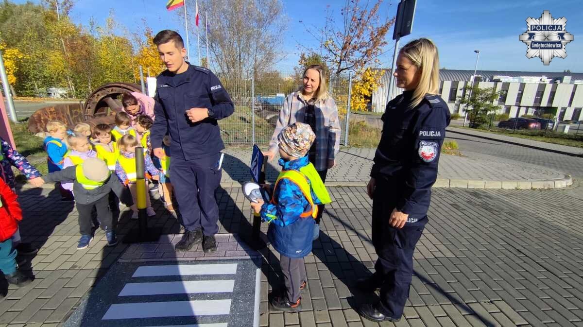 Policjanci ze świętochłowickiej komendy spotkali się z dziećmi z Przedszkola "Pingwinki", aby porozmawiać o bezpieczeństwie na drodze. Mundurowi przypomnieli najmłodszym, jak ważne jest noszenie elementów odblaskowych, prawidłowe przechodzenie przez jezdnię oraz zachowanie ostrożności w pobliżu jezdni.