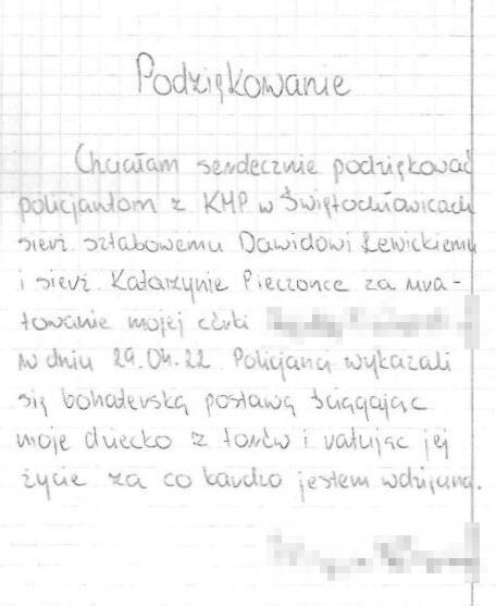 „Policjanci wykazali się bohaterską postawą, ściągając moje dziecko z torów i ratując jej życie, za co bardzo jestem wdzięczna”. Takie słowa wdzięczności znalazły się w liście, który wpłynął na ręce Komendanta Wojewódzkiego Policji w Katowicach. Mieszkanka Świętochłowic podziękowała dwóm świętochłowickim policjantom za uratowanie życia jej 11-letniej córce.