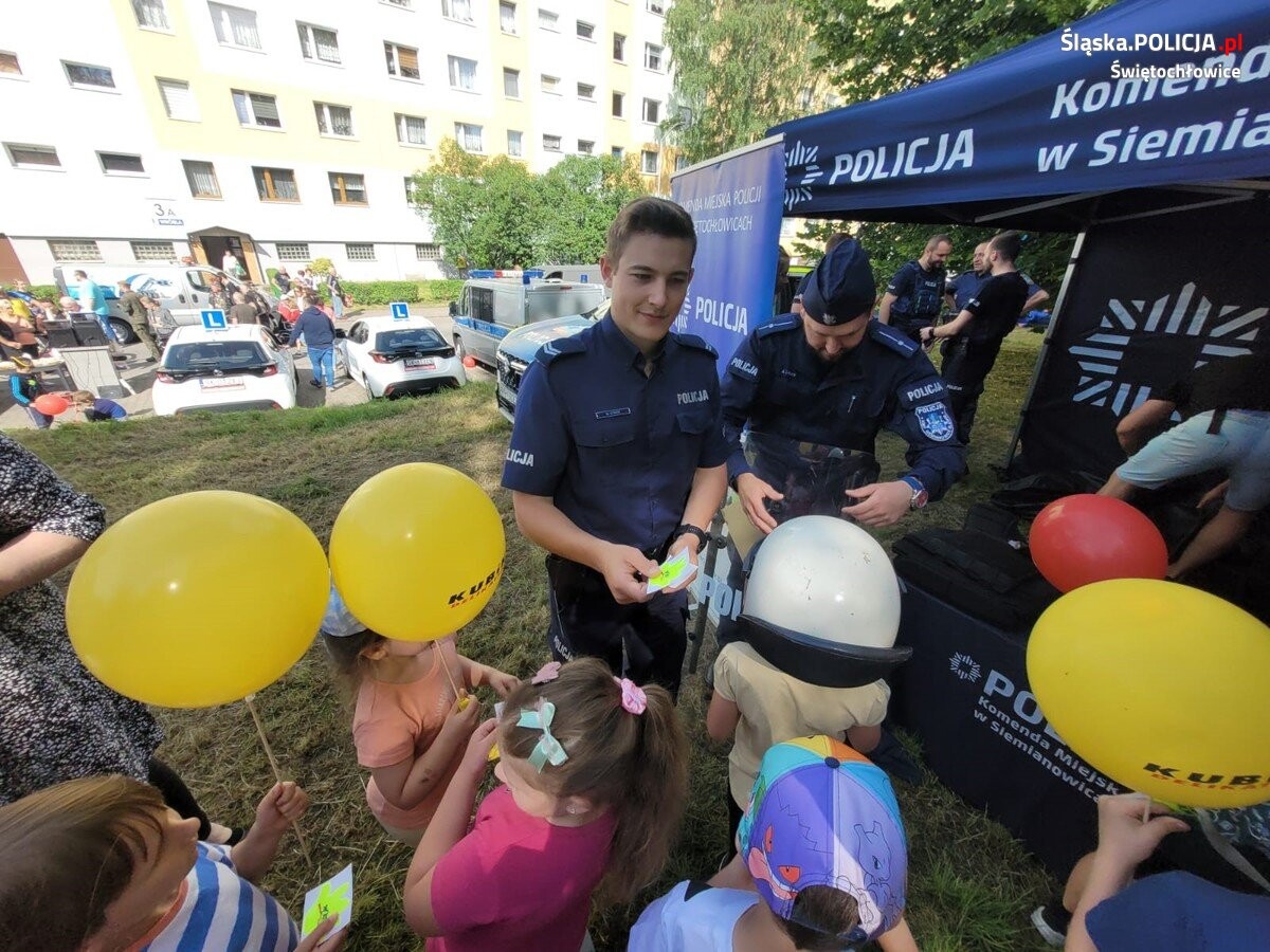 Na dzieci i osoby odwiedzające czekało mnóstwo atrakcji, upominków i poczestunków, które ufundowali sponsorzy. Policjanci z świętochłowickiej oraz siemianowickiej komendy na stanowisku profilaktycznym wraz z siemianowicką Strażą Miejską rozdawali wiele przydatnych gadżetów związanych z bezpieczeństwem. Czekały tam także broszury informacyjne dotyczące naboru do służby w Policji. Sznupek w towarzystwie innych maskotek umilały czas najmłodszym i jak zawsze został wyściskany przez milusińskich.