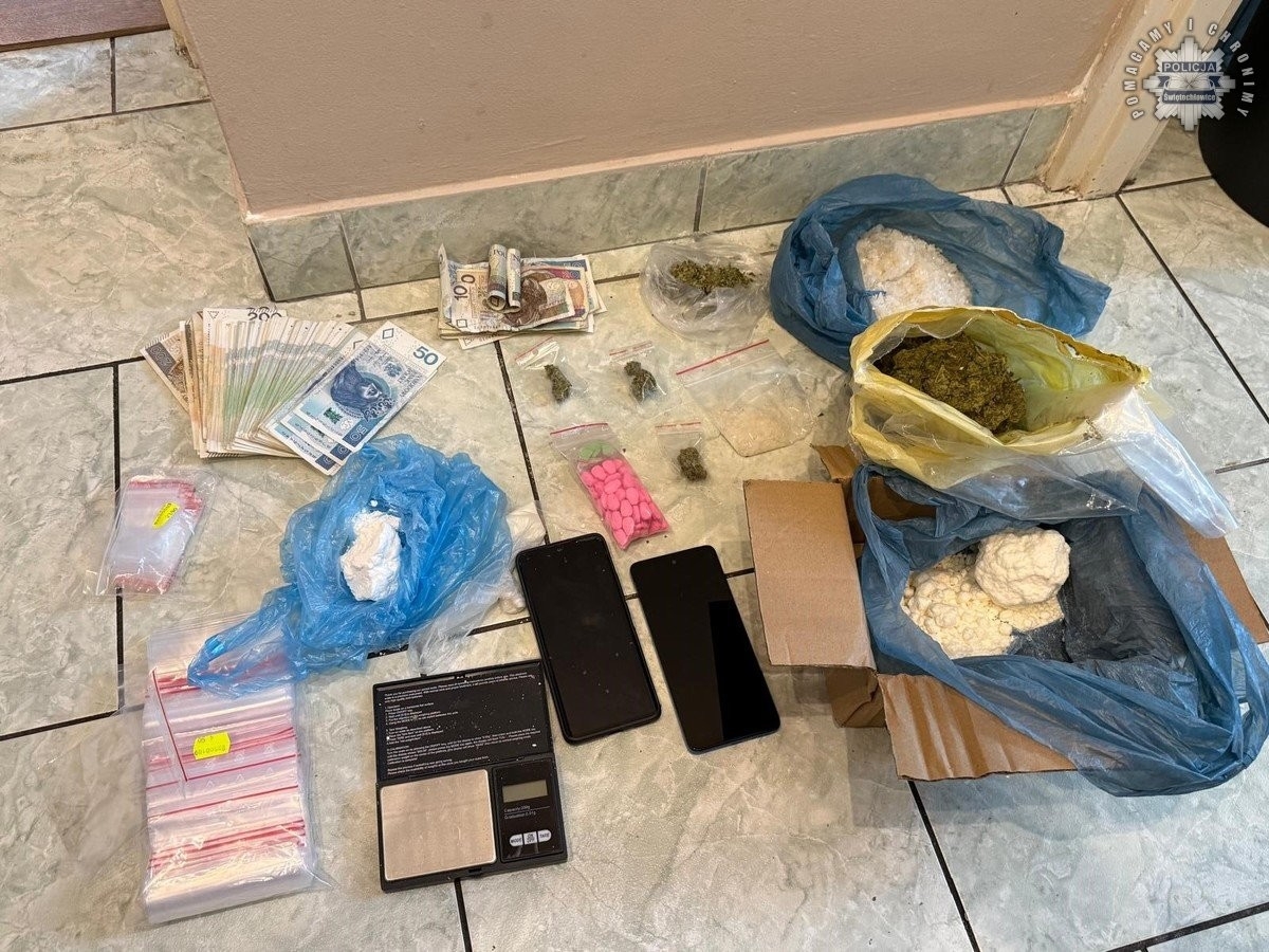 Podczas przeszukania mieszkania znaleźli różnego rodzaju środki odurzające. Amfetamina, metaamfetamina i marihuana o łącznej wadze blisko jednego kilograma, a także ponad 100 tabletek ekstazy.
