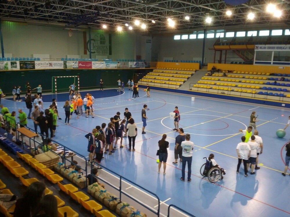 We wtorek, 12 czerwca, uczniowie z klas gimnazjalnych współorganizowali VI Letnią Olimpiadę dla Osób Niepełnosprawnych Intelektualnie pod hasłem „Ruch to zdrowie”. Na hali sportowej przy ul. Dąbrowskiego w Chorzowie zgromadziły się reprezentacje placówek zajmujących się osobami z upośledzeniem intelektualnym, które rywalizowały między sobą o zwycięstwo.
