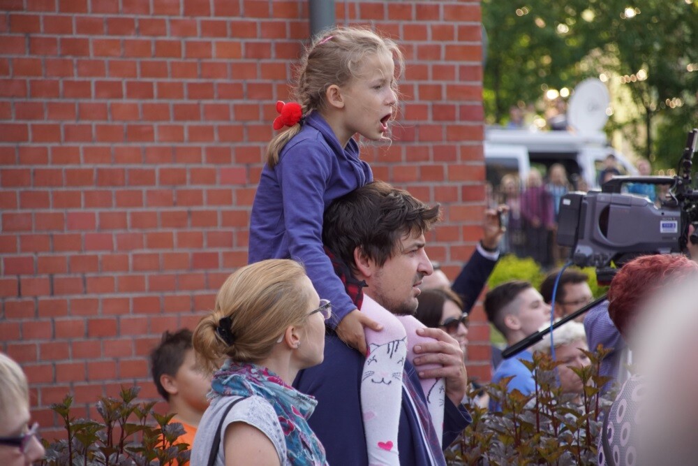 Po zwiedzaniu Muzeum Powstań Śląskich prezydent RP Andrzej Duda spotkał się z mieszkańcami miasta na placu przy muzeum. Na początku, zanim prezydent opuścił gmach, oczekiwania umiliły występy śląskich, młodych artystów. Następnie, gdy głowa państwa i wszyscy goście pojawili się na placu, odśpiewano hymn państwowy.