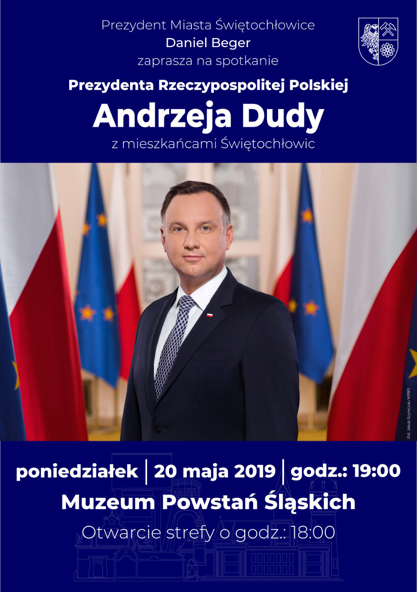 Około godz. 19.00 Prezydent Andrzej Duda spotka się ze świętochłowiczanami w strefie wyznaczonej przed Muzeum Powstań Śląskich. Planowane jest także jego wystąpienie.