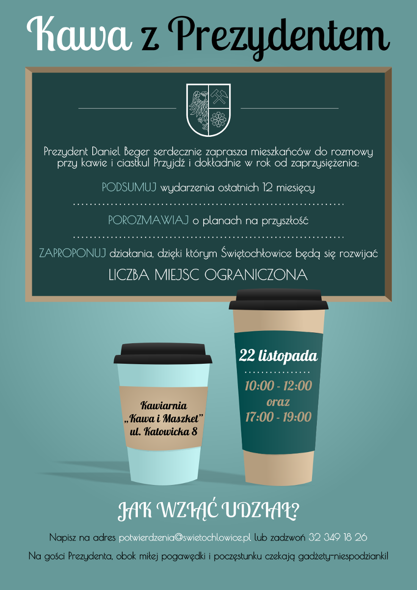 Pytania o aktualną sytuację i przyszłość miasta, propozycje zmian i rozwoju, rozmowy o minionym roku w mieście, a także o codziennym życiu, potrzebach i radościach mieszkańców Świętochłowic – wszystko to w nieoficjalnej atmosferze, przy kawiarnianym stoliku, w towarzystwie Prezydenta Miasta.