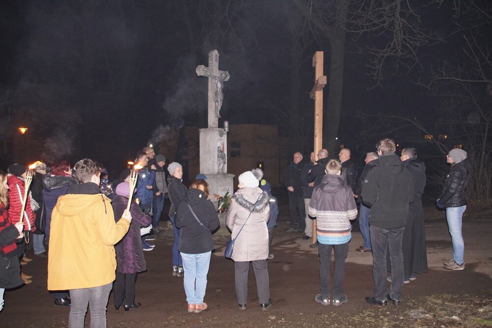Chociaż pogoda nie sprzyjała, w żaden sposób nie przeszkodziło to wiernym w odtworzeniu męczeńskiej drogi Chrystusa. Wraz ze zmierzchem młodzież rozpaliła pochodnie, których płomienie towarzyszyły parafianom w tych wieczornych chwilach religijnej kontemplacji.