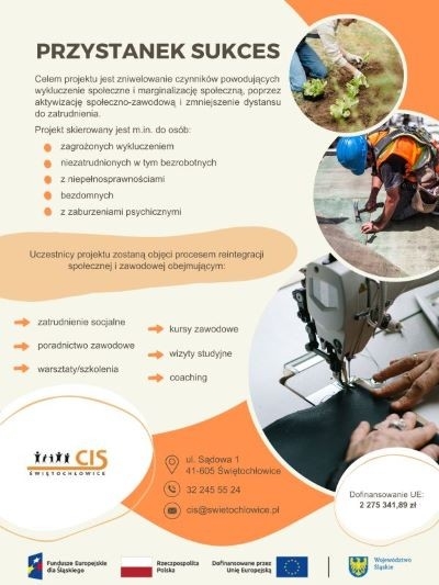 Miasto Świętochłowice uruchomiło projekt „Przystanek Sukces”, który ma na celu wsparcie osób zagrożonych wykluczeniem społecznym i marginalizacją. Projekt, który będzie realizowany do końca 2027 roku, skierowany jest do osób z różnych grup ryzyka, w tym bezrobotnych, długotrwale bezrobotnych, osób z niepełnosprawnościami, uzależnionych oraz uchodźców.