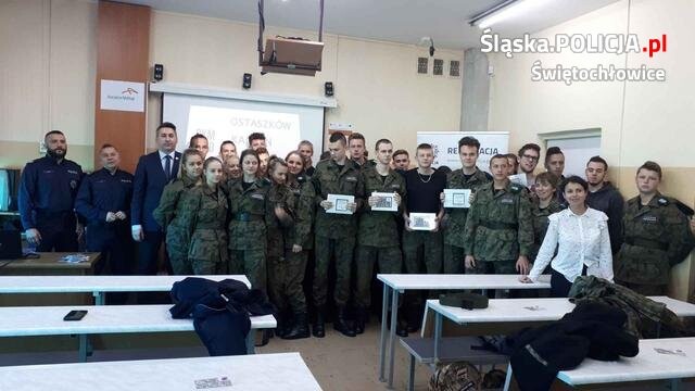 Drugą część spotkania przygotowali świętochłowiccy mundurowi wspólnie z Komendą Wojewódzką Policji w Katowicach, a która poświęcona była służbie w Policji. Inspektor Andrzej Sira przedstawiał zalety służby w Policji, zachęcając w ten sposób młodzież z klas mundurowych do wstąpienia w szeregi „niebieskich braci”.