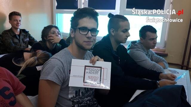 Młodzież wysłuchała wykładu Prezesa Stowarzyszenia „Rodzina Policyjna 1939 r.” w Łodzi Jarosława Olbrychowskiego na temat etosu służby przyświecającego dawnym i obecnym policjantom oraz zagadnienia związane ze Zbrodnią Katyńską. Prezes przybliżył historię tragicznych losów funkcjonariuszy Policji Państwowej II RP, którzy na przełomie września 1939 roku i maja 1940 roku, byli przetrzymywani w nieludzkich warunkach w największym obozie NKWD w Ostaszkowie. Wspomniał o Kalininie, gdzie w piwnicach obwodowego zarządu NKWD wykonywano egzekucje strzałem w tył głowy oraz Miednoje, gdzie w dołach śmierci grzebano m.in. zamordowanych funkcjonariuszy Policji Państwowej II RP.