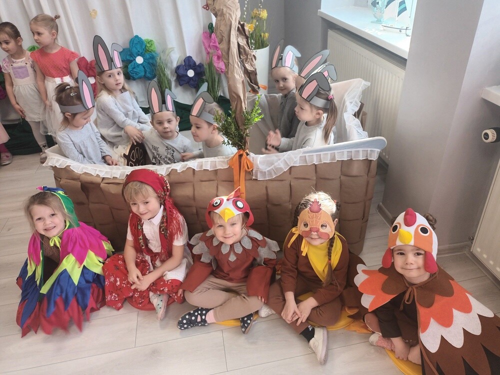27 marca dzieci z grupy "Pszczółki" z Przedszkola Miejskiego nr 4 zaprosiły do swojej sali wszystkich kolegów i koleżanki z przedszkola oraz nauczycielki, aby zaprezentować swoje zdolności artystyczne w przedstawieniu wielkanocnym.
