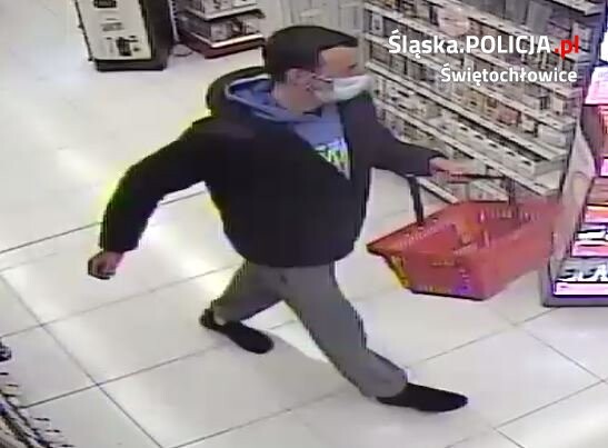 Publikujemy zdjęcia z monitoringu, na których kamery zarejestrowały podejrzewanego o dokonanie przestępstwa w dwóch różnych wersjach odzieży wierzchniej. Świętochłowiccy śledczy dążą do ustalenia tożsamości tej osoby.
