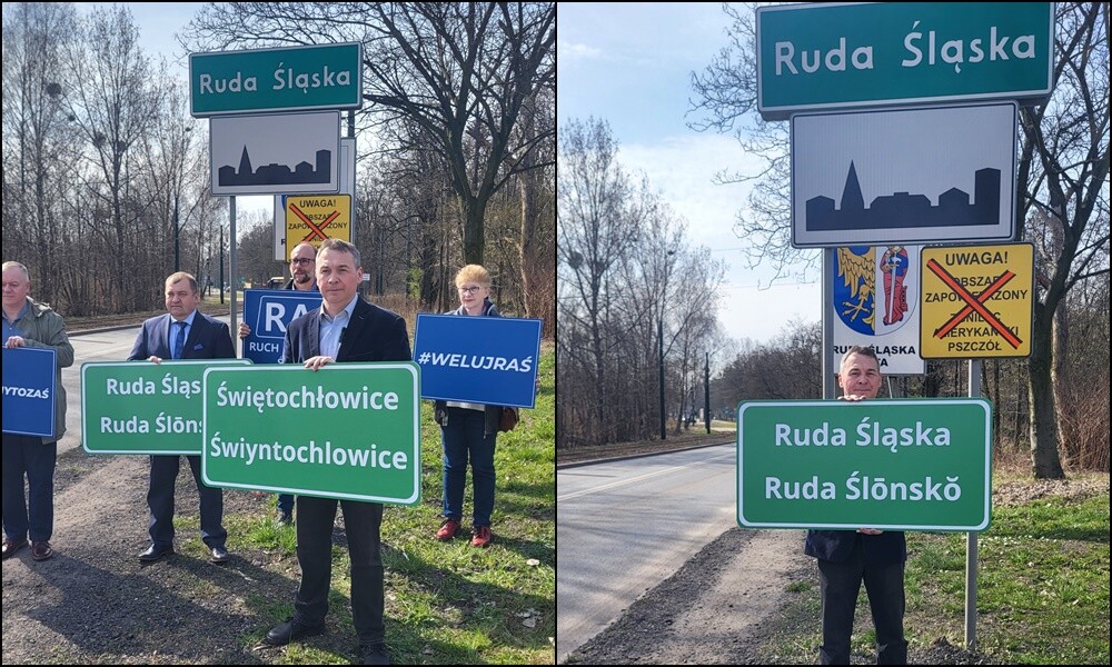 - Uznanie śląskiego za język regionalny stwarza możliwość wprowadzenia tablic ze śląskimi nazwami miejscowości. W wielu przypadkach nazwy te nie różnią się od polskich, bowiem polskie oparto na lokalnych słowiańskich, a więc śląskich. Są jednak i przypadki, kiedy nazwa śląska jest inna. Jeśli gminę zamieszkuje ponad 20% osób deklarujących w spisie język śląski, nazwy śląskie mogą być wprowadzone na wniosek rady gminy. Jeśli warunek ten nie został spełniony, samorząd może zarządzić konsultacje społeczne i, jeśli ponad 50% uczestników wypowie się pozytywnie, także wystąpić do MSWiA o zgodę na wprowadzenie tablic. Apelujemy do przyszłych radnych, by tam, gdzie ma to uzasadnienie w postaci różnic między nazwą śląską a polską, skorzystali z tych możliwości. Nie przez przypadek spotykamy się na granicy Rudy Śląskiej i Świętochłowic. To dwa miasta na prawach powiatu, w których ponad 20% mieszkańców zadeklarowało używanie języka śląskiego - mówił Adrian Adamus podczas konferencji prasowej.