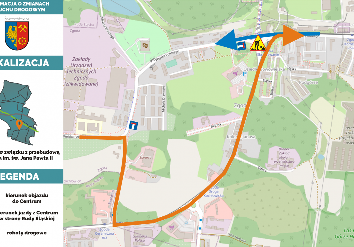 Aby dostać się do Centrum z terenów okolic Centrum Kultury Śląskiej lub Rudy Śląskiej zostanie wytyczony objazd ulicami Ceramiczną i Śląską.